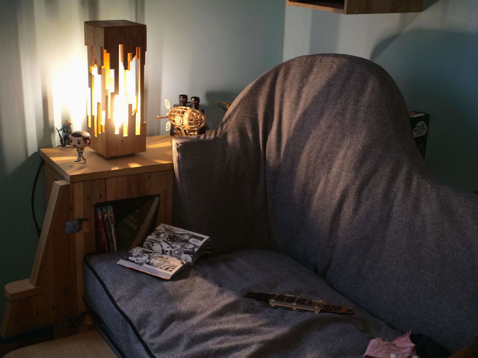 Petite lampe de bureau ou chevet, inspirée du jeu "Minecraft" et d'une réalisation sur L'air du bois".